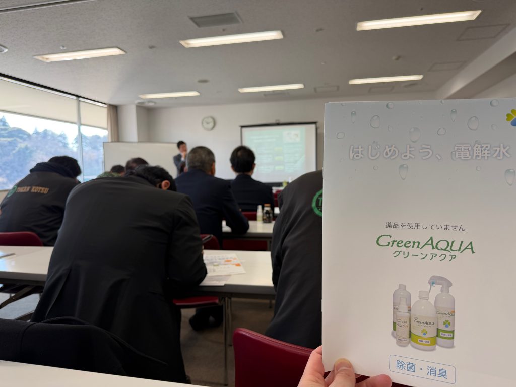 また、弊社では、同社が提供する 「グリーンアクア」 を採用し、バス・タクシー車内に噴霧を行うことで衛生環境の維持に努めております。